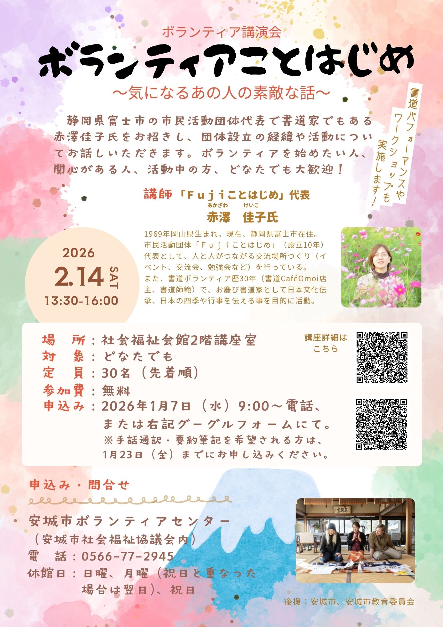 ボランティア講演会「ボランティアことはじめ~気になるあの人の素敵な話~」を開催します