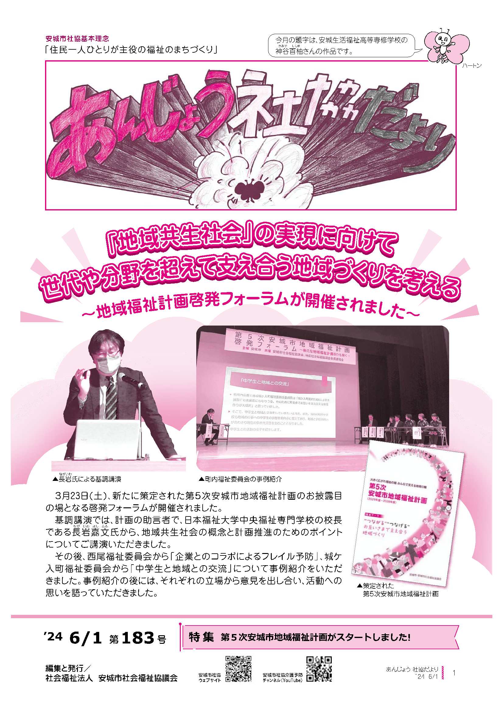 | ファイル名(形式:サイズ) | 社協だより第183号(PDF形式:1.9MB) |