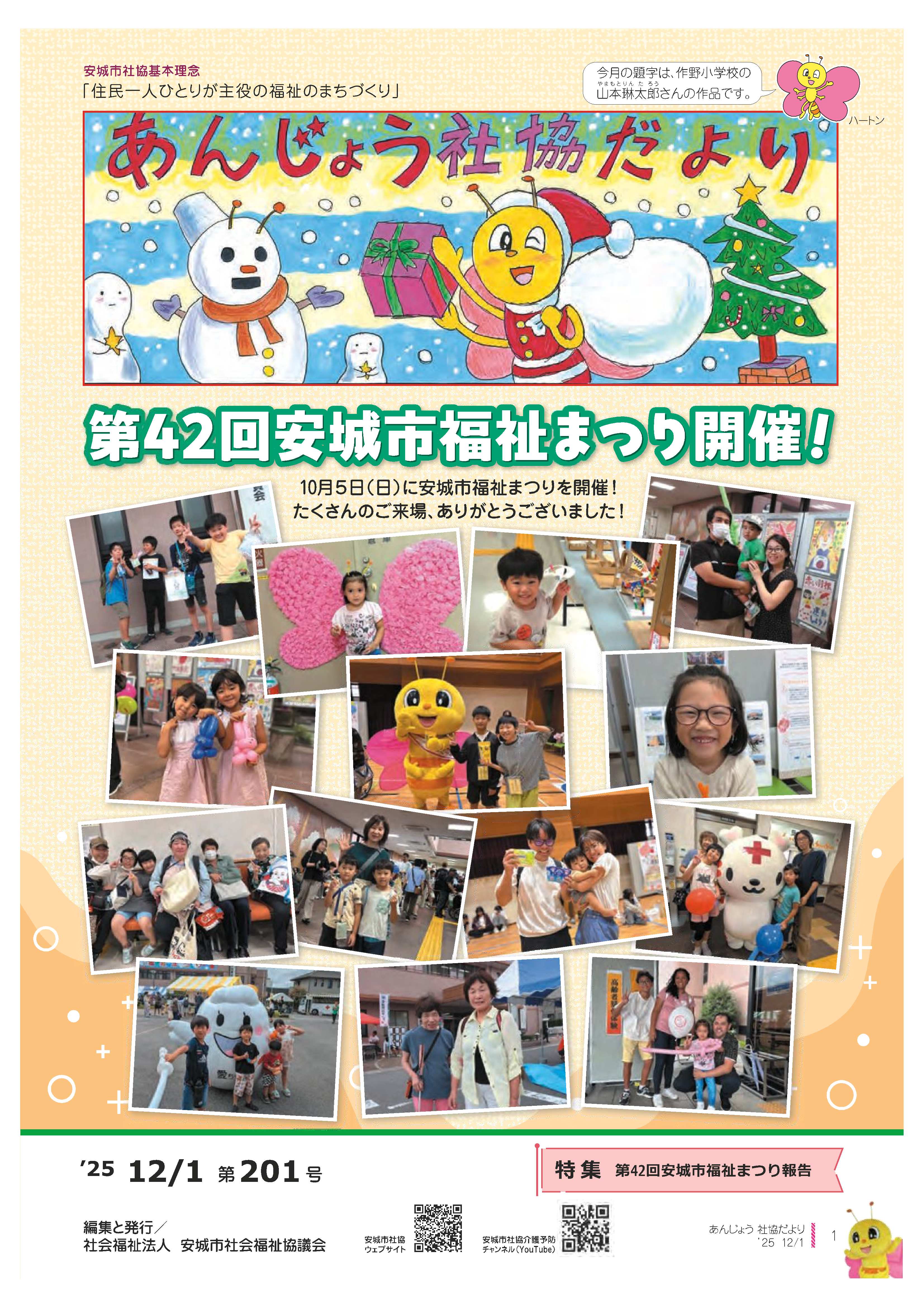 一覧へ 2025年 発行日 令和7年12月1日 主な内容 第42回安城市福祉まつり報告 ファイル名(形式:サイズ) 社協だより第201号(PDF形式:3.1MB) 広報紙データ ダウンロード サムネイル